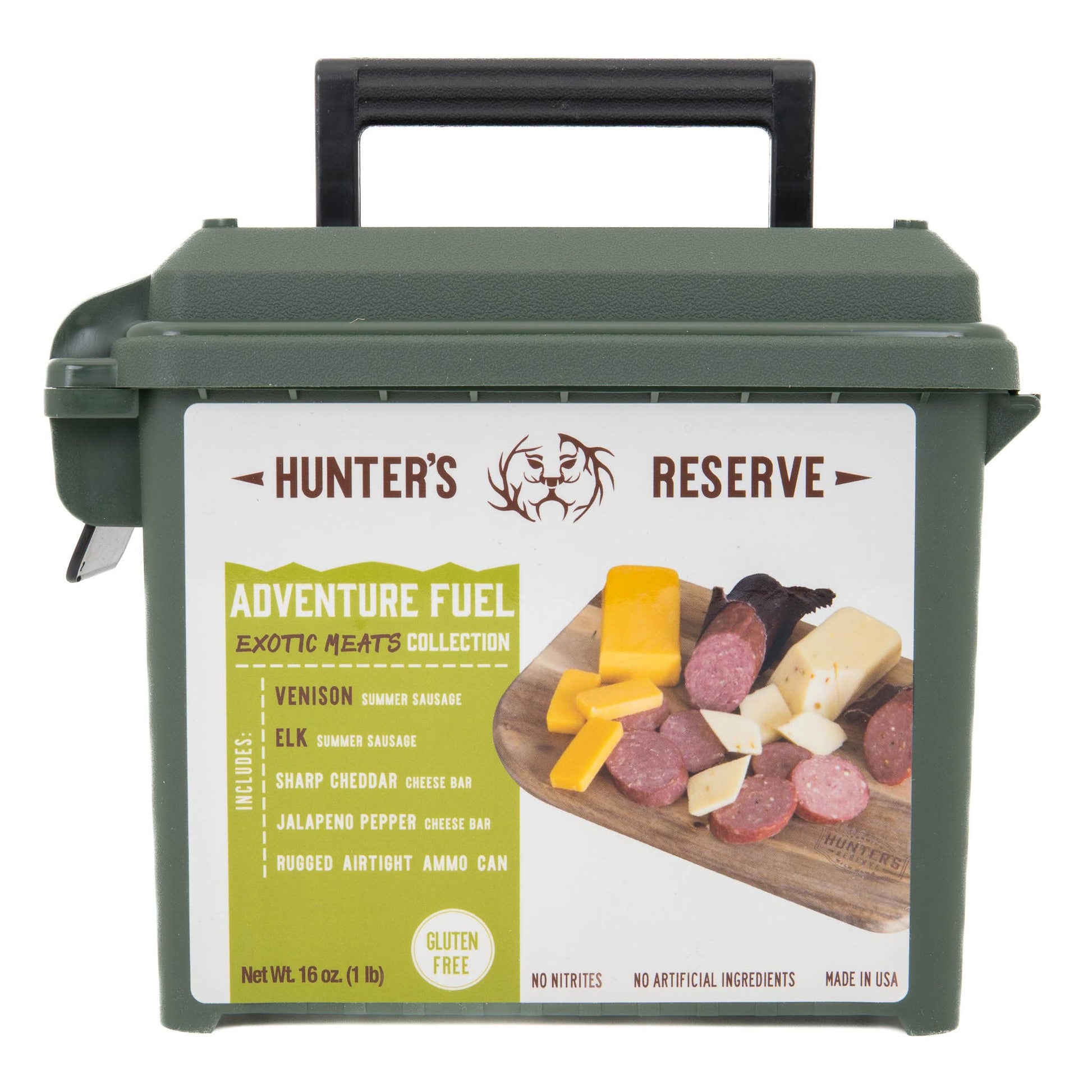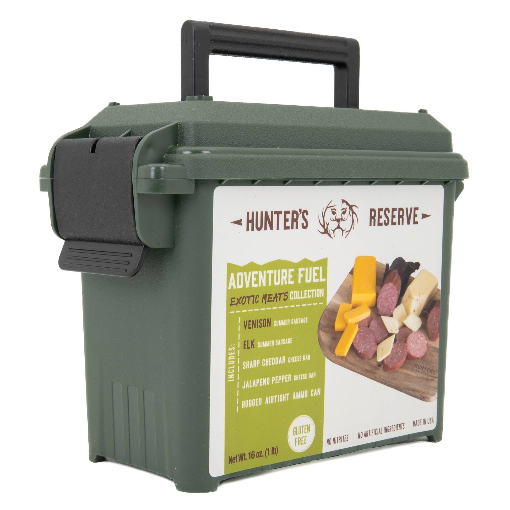 Fuel your next adventure with a delicious taste of the wild! Adventure Fuel packs a flavorful punch in this handy, reusable mini ammo can. This gift box is perfect for the outdoorsman or anyone who loves a savory snack.