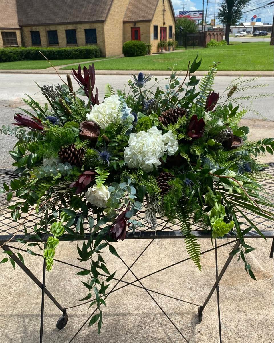 Create a personalized and meaningful tribute with this fully customizable casket spray, perfect for honoring your loved one during their funeral service. With a range of choices available, you can celebrate their life in a special way. Let us assist you in creating a fitting tribute.ith a