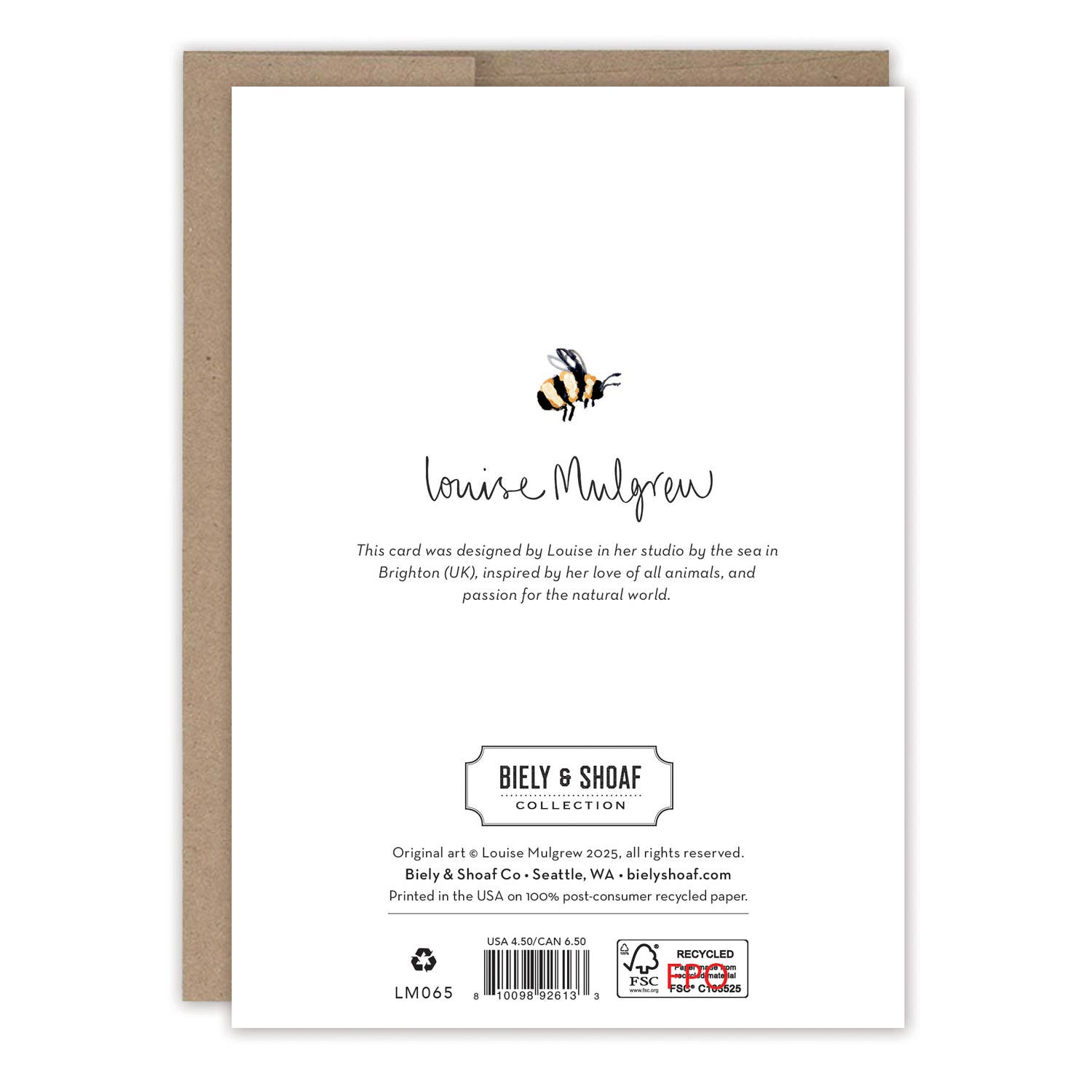 Inside verse: Sending good thoughts and sunshine your way • Gold foil details • Illustrated by Louise Mulgrew • Size: A6, 4.5" x 6.25" • Paired with a Brown Kraft envelope • Printed in the USA on high-quality, FSC certified 100% post-consumer recycled paper
