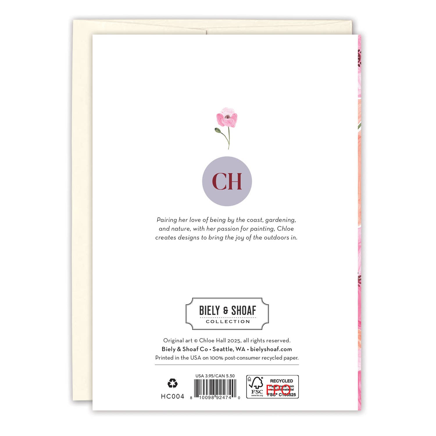 Inside verse: So excited for you! • Illustrated by Chloe Hall • Size: A6, 4.5" x 6.25" • Paired with a warm white envelope • Printed in the USA on high-quality, FSC certified 100% post-consumer recycled paper
