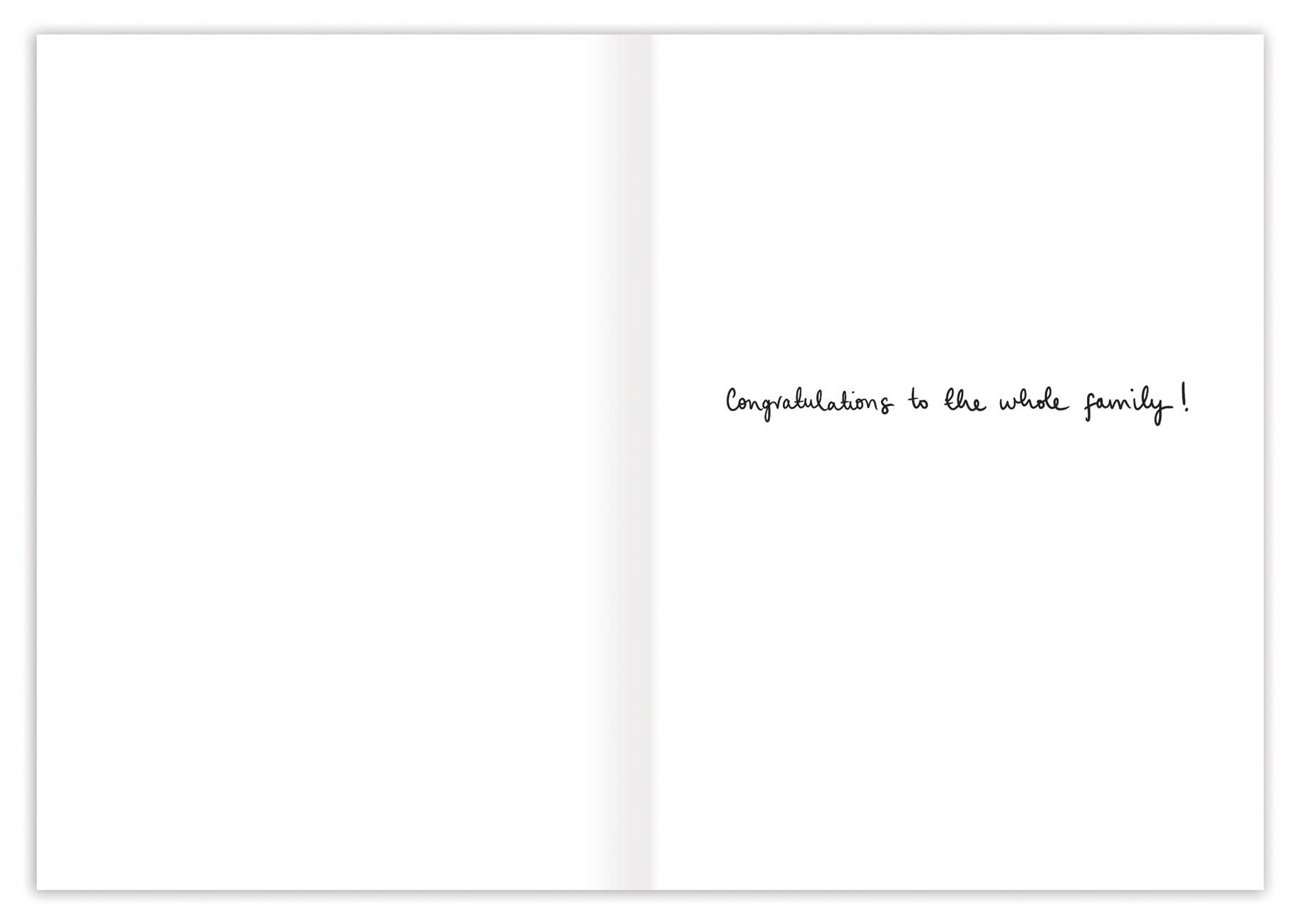 Inside verse: Congratulations to the whole family! • Gold foil details • Illustrated by Louise Mulgrew • Pre-priced • Size: A6, 4.5" x 6.25" • Paired with Brown Kraft envelope • Printed in the USA on high-quality, recycled paper