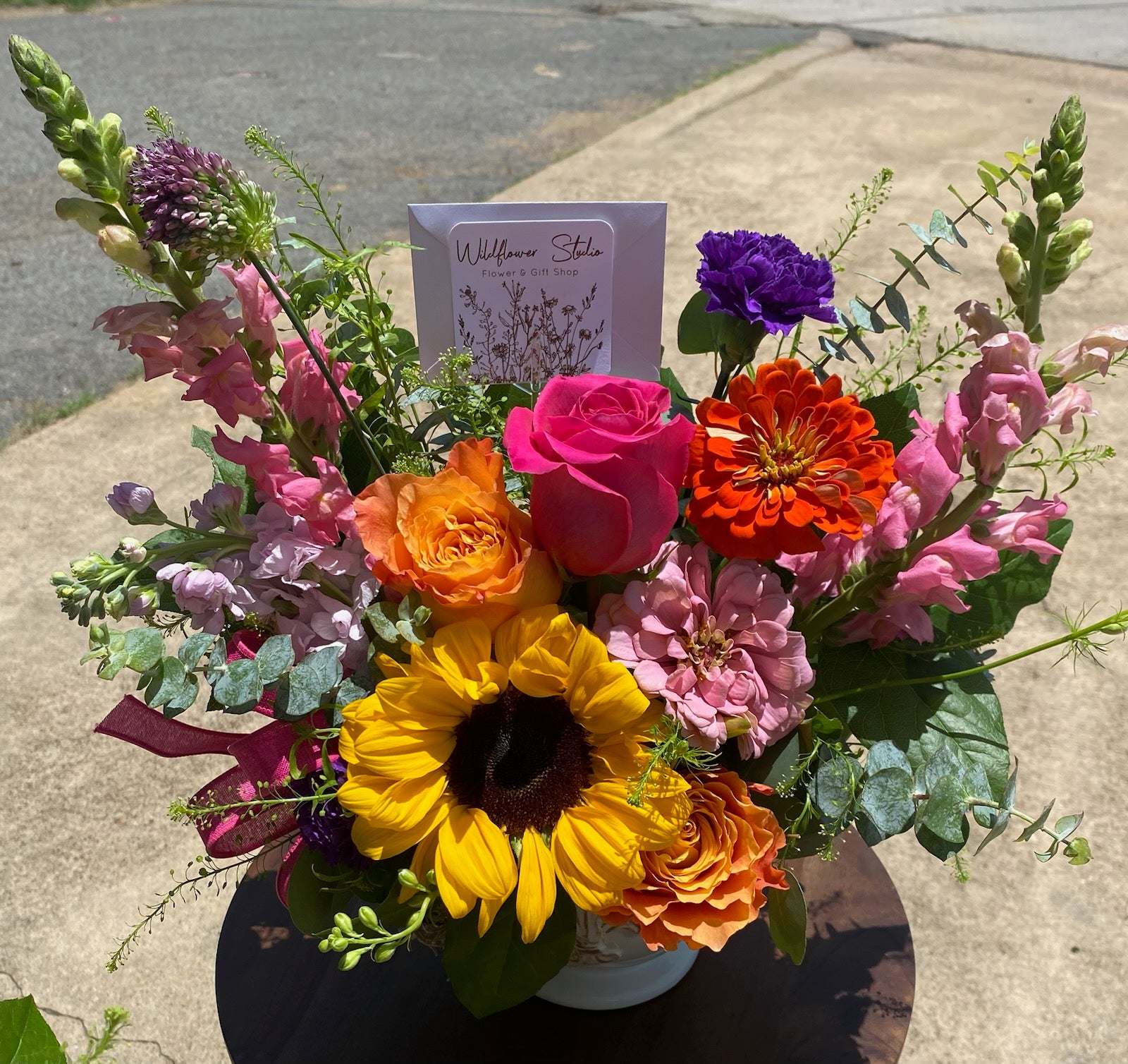 Bright, bold, and full of cheer! This garden-style arrangement features fresh seasonal blooms. Bursting with color and charm, it’s the perfect way to celebrate, send a little sunshine, or brighten someone’s day.